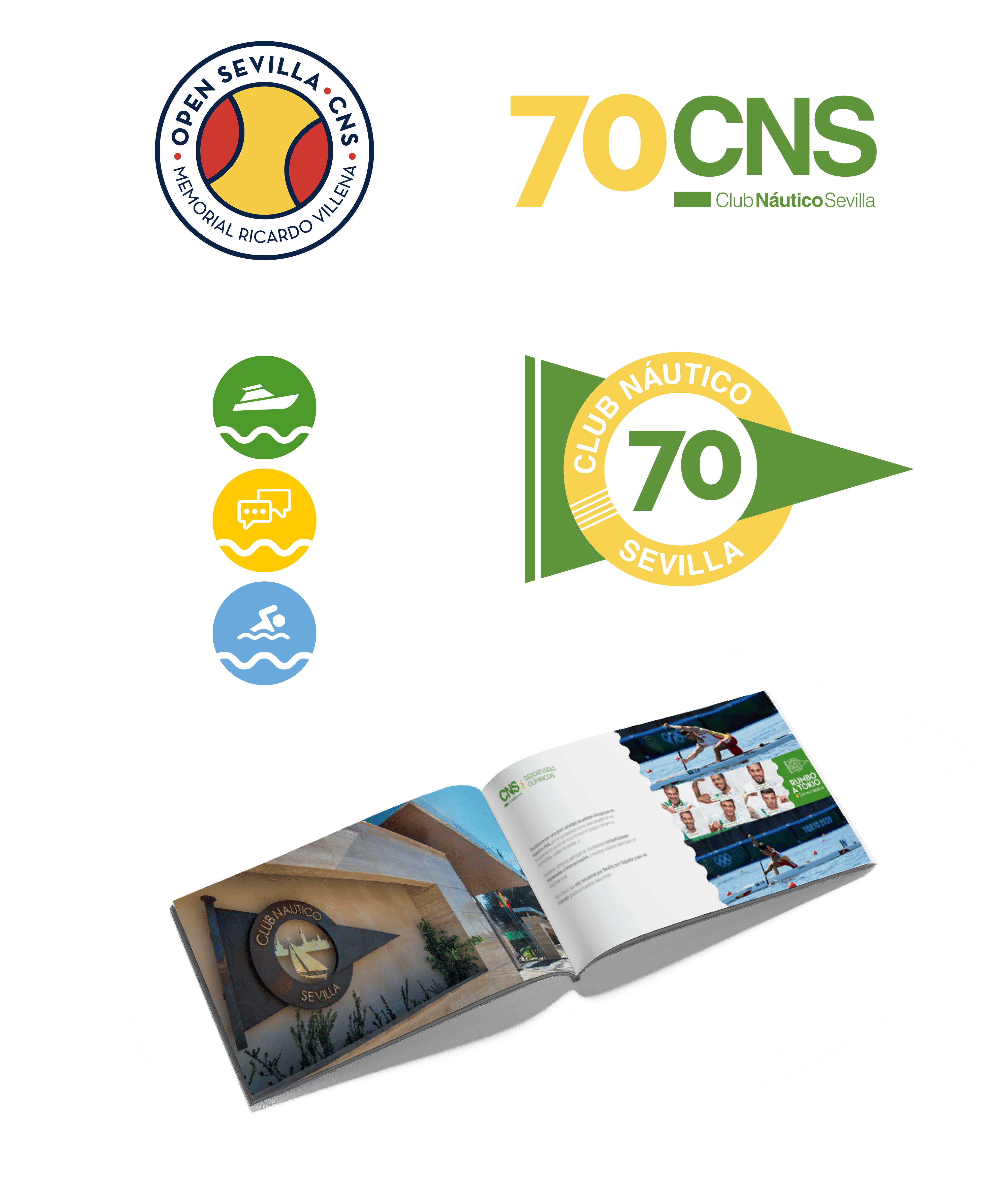 Estudiamos y ampliamos la identidad del Club Náutico para que su universo corporativo no se quede tan solo en un logotipo, generando todo tipo de recursos y adaptaciones acordes, desde implementaciones físicas, a cartelería, adaptaciones digitales y soportes para eventos, entre otros.